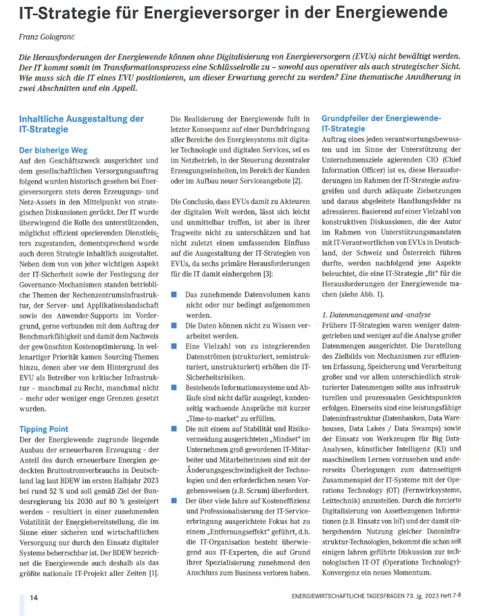 📰 Unser Partner und CEO Franz Gologranc hat diese Materie einer tiefergehenden Analyse unterzogen, die nun in der aktuellen Ausgabe des Magazins 𝐞𝐭 - 𝐄𝐧𝐞𝐫𝐠𝐢𝐞𝐰𝐢𝐫𝐭𝐬𝐜𝐡𝐚𝐟𝐭𝐥𝐢𝐜𝐡𝐞 𝐓𝐚𝐠𝐞𝐬𝐟𝐫𝐚𝐠𝐞𝐧 erschienen ist.